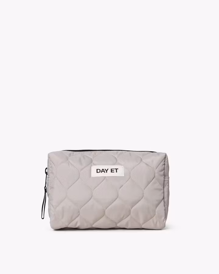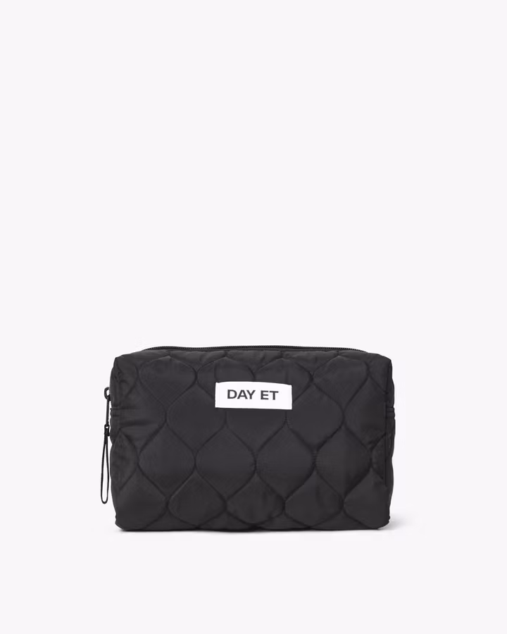 En vattert toalettmappe i en praktisk størrelse – ideell for oppbevaring av dine viktigste produkter. Den har en åpen innvendig lomme og lukkes med glidelås.